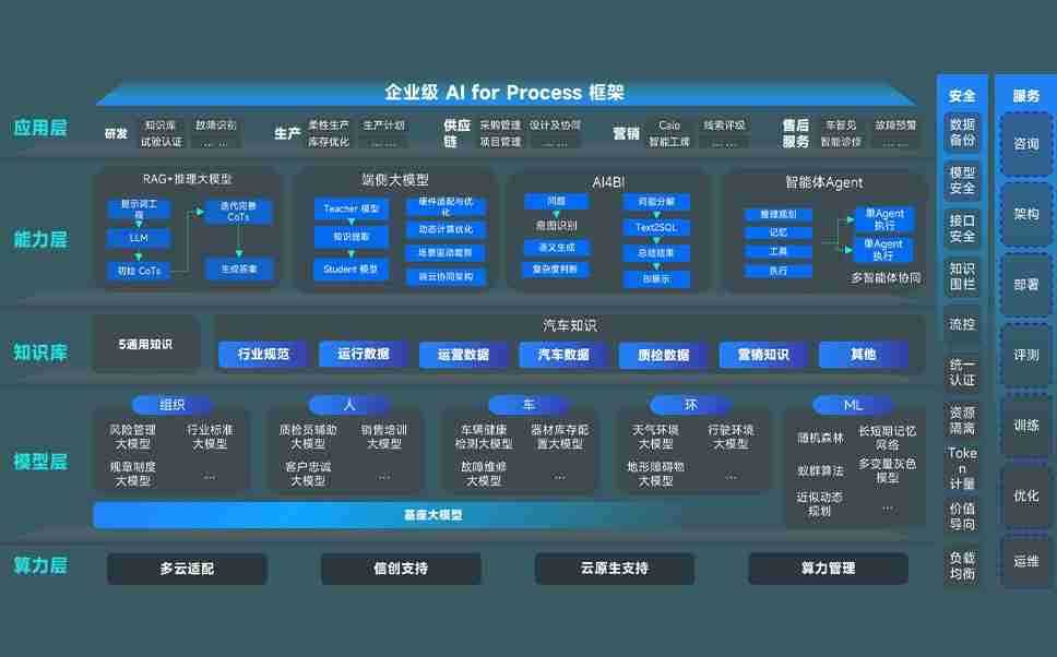 端到端的一站式AI工作空间深度融合了从企业战略规划到日常经营的全流程业务板块,,,定向解决车企内部领域多、、、、部门多、、链条长、、、场景碎片化等难题,,,支持车企快速构建以AI为核心的生产力写作体系,,实现任务执行与AI能力的无缝集成与交互